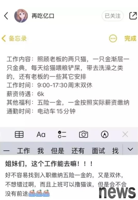He also posted such a thing on Xiaohongshu, and netizens asked him to try it. Later, he tried it and found that the job was real. The work content is to shovel poop, feed water, tease cats, etc. every day. There are two kittens, all of which are quite cute, namely the Golden Ring Layer and the Golden Dot Cat. Later he also shared his daily life with the cat and posted it on the Internet.