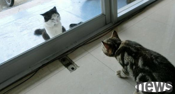 Unexpectedly, the cat appeared again during the day the next day. My cat seemed to have seen this new friend, and the two cats faced each other for the first time through the glass. Unexpectedly, "cat sadomasochism" would begin!