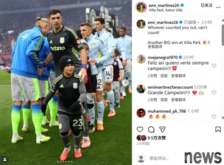 In this round of the Premier League, Villa defeated Manchester City 1-0. Villa goalkeeper Martinez also posted a photo of the game after the game, with the text: "No matter who looks down on you, it doesn't count. Another important victory...