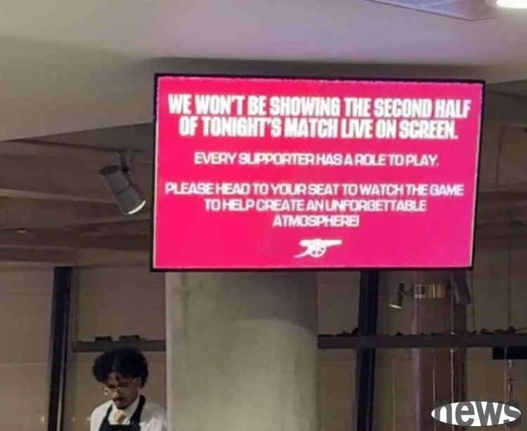 During the halftime break of this game, a reminder message was displayed on the TV in the lobby of Arsenal's home stadium: "We will not broadcast the second half of tonight's game live on TV. Every fan must play his or her role. Please return to your seat as soon as possible to help the team create an unforgettable atmosphere."