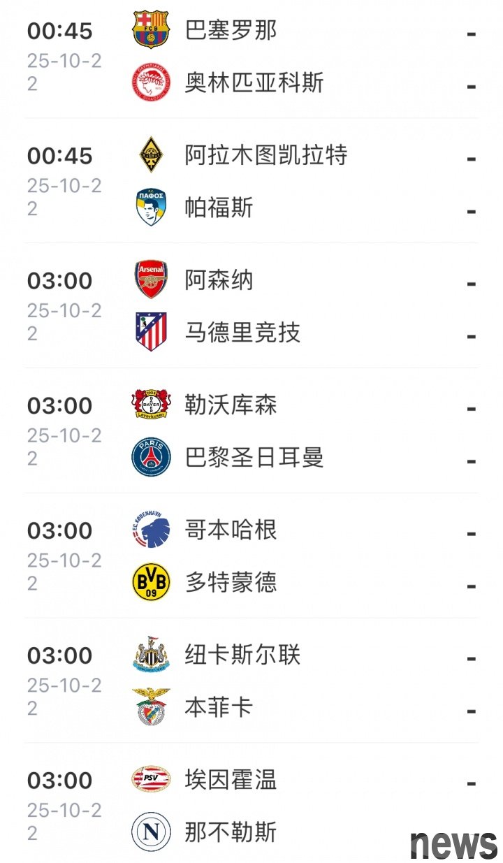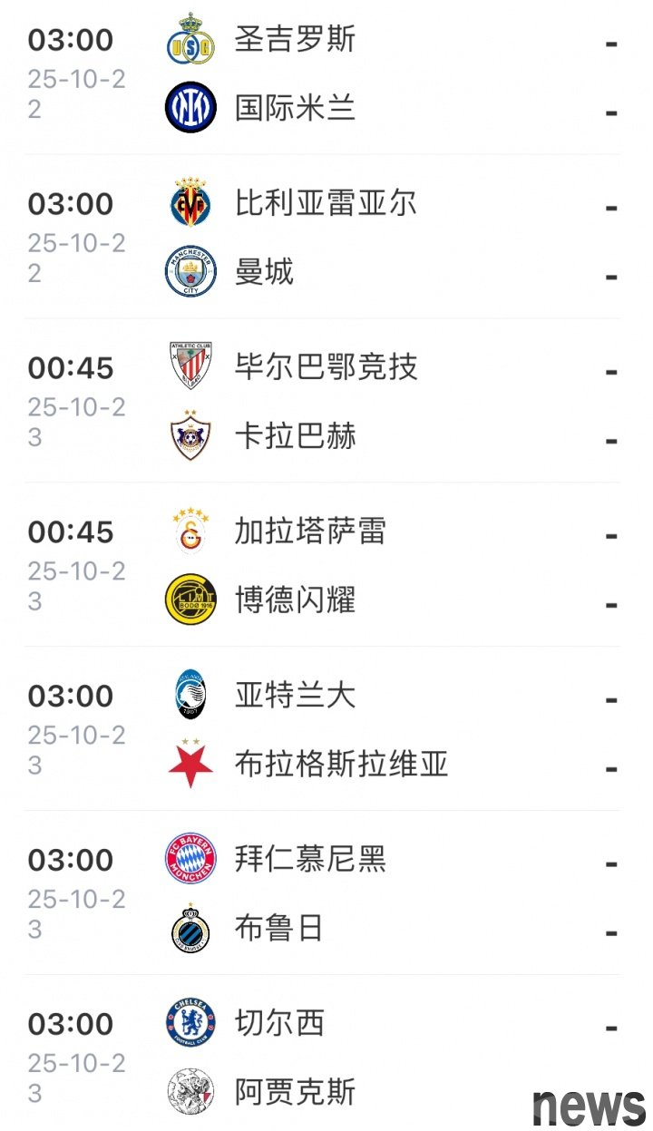 It will be held in the early morning of October 22-23, and 18 games will still be played within 2 days. Champions League stage round 3 preview↓...