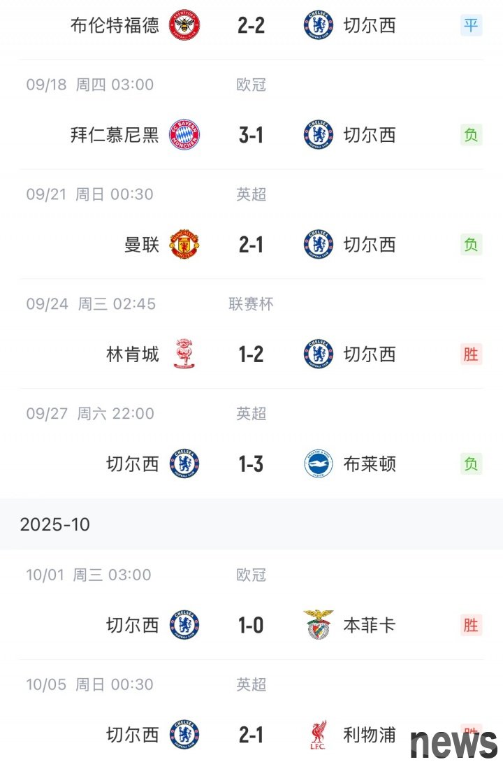 In September, Chelsea suffered three unwinds and lost to Manchester United 1-2, and lost to Brighton 1-3 at home at the end of the month.
