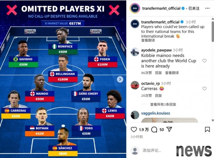 Dezhuan listed the most expensive lineup that failed to be selected for the current national team, with a total price of 677 million euros. Goalkeeper: Sanchez (Spain, 20 million euros) Defenders: Carreras (Spain, 50 million euros), Botman (Netherla...