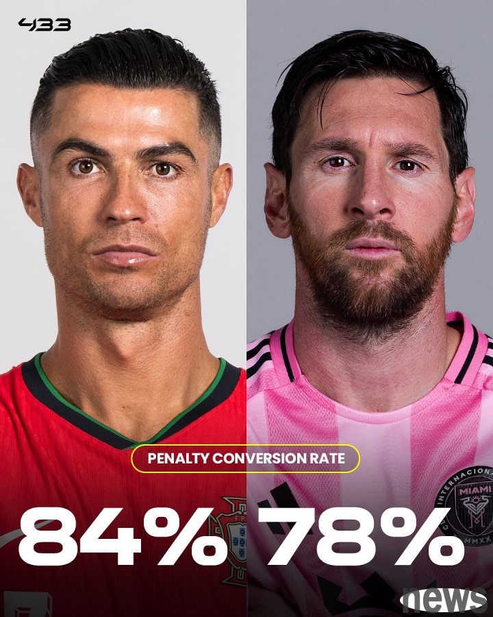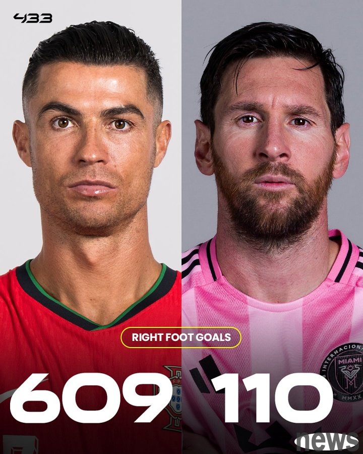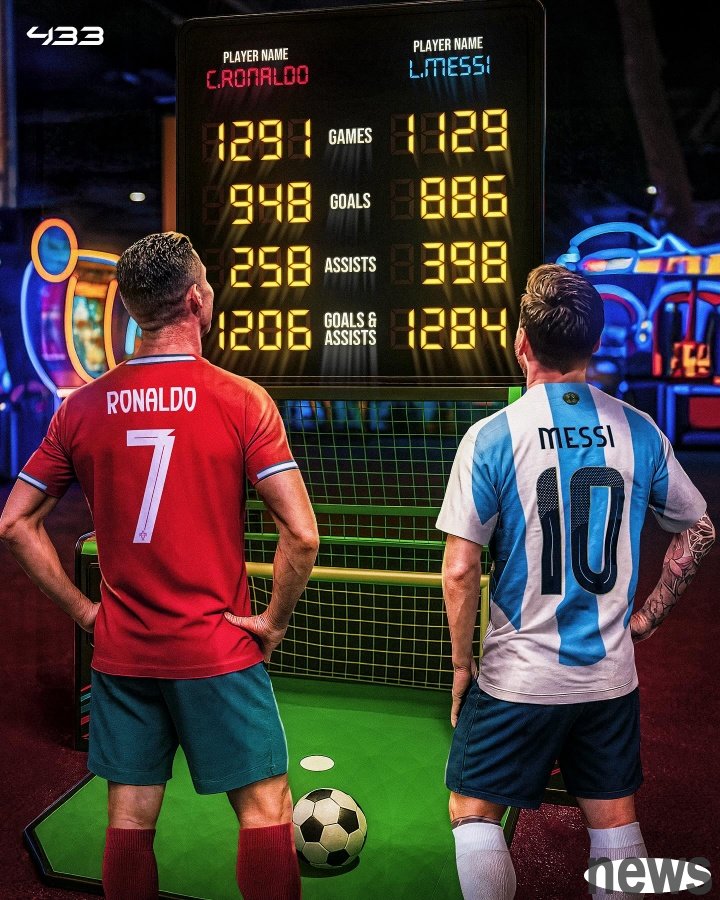 The competition between Messi and Ronaldo has lasted for more than 20 years. 433 compared the data of the two and called the competition between the two the greatest showdown in football history.